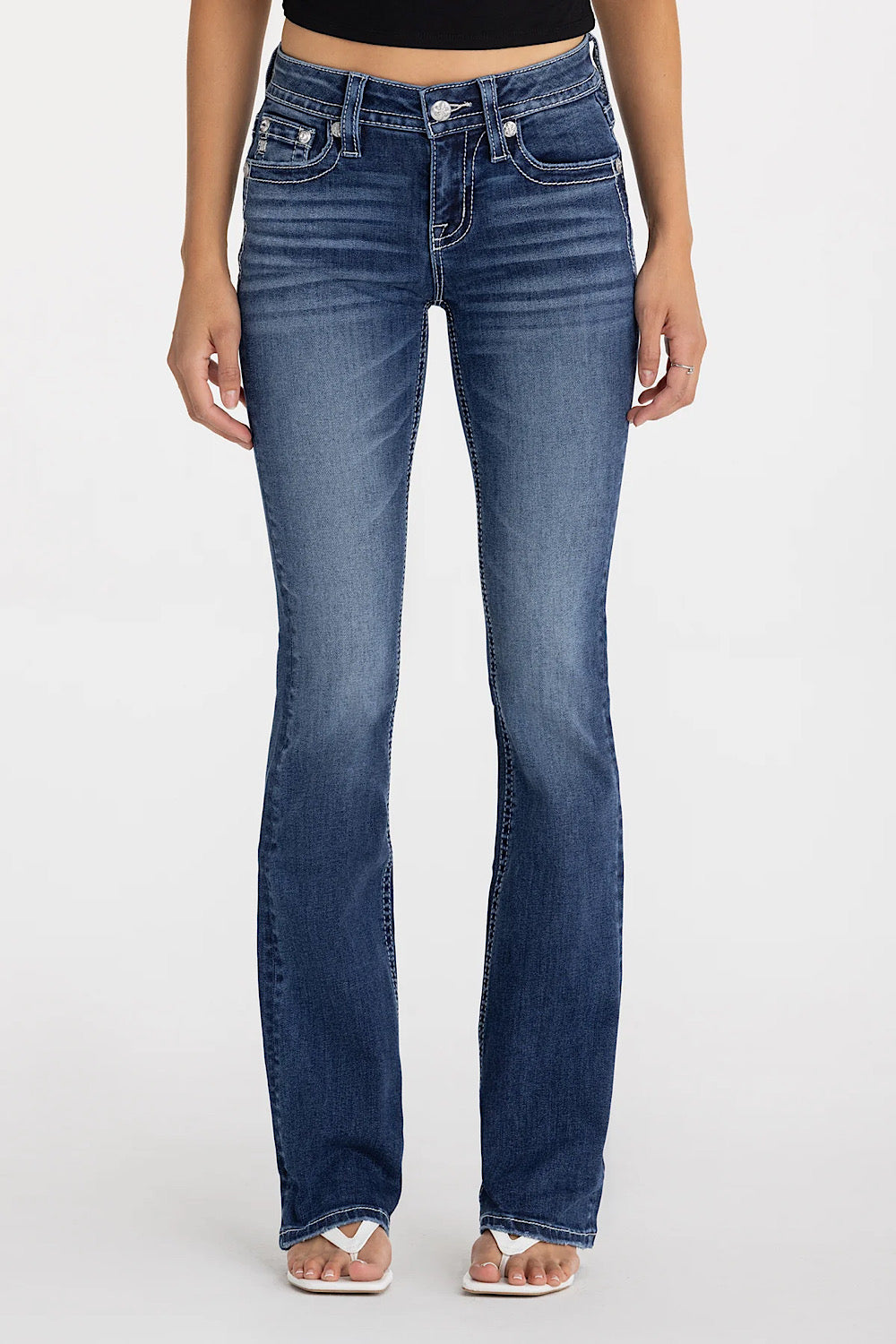 Tζιν MISS ME mid-rise, boot με σχέδιο στην μέση και τις τσέπες. Τα αγαπημένα σας Miss Me jeans με υπέροχα ξεβάμματα και κεντήματα. Καταπληκτική εφαρμογή.