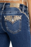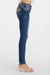 Tζιν MISS ME mid-rise, skinny με χρυσά λουλούδια. Τα αγαπημένα σας Miss Me jeans με υπέροχα ξεβάμματα και κεντήματα. Καταπληκτική εφαρμογή.