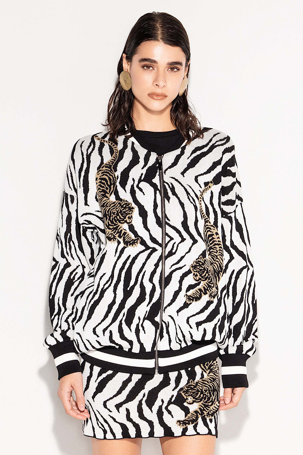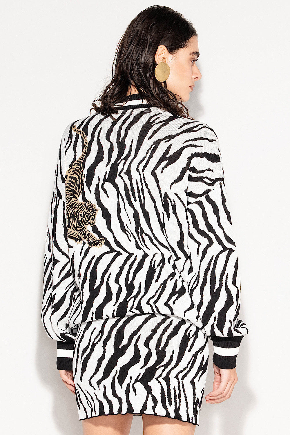 JACKET BOMBER ΠΛΕΚΤΟ ZEBRA PRINT ΜΕ ΤΙΓΡΗ